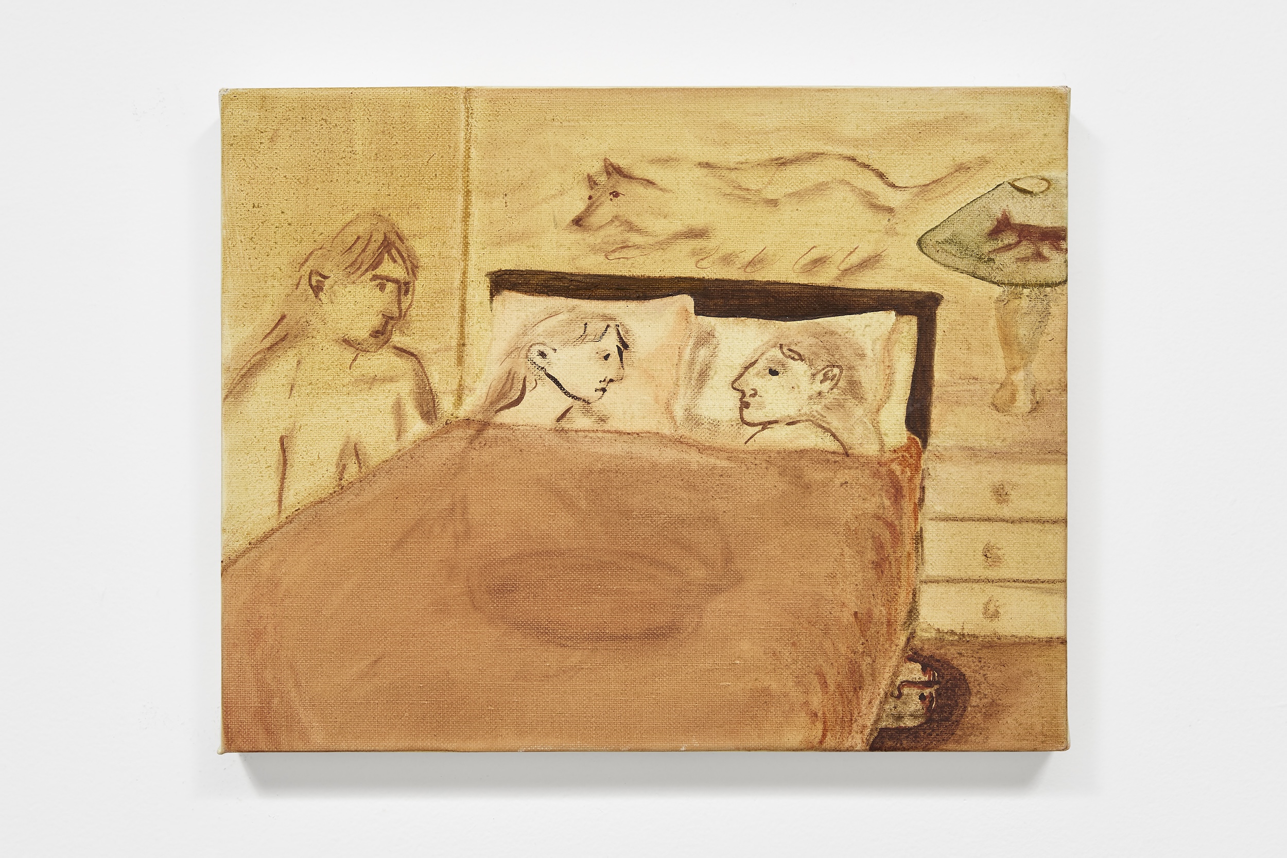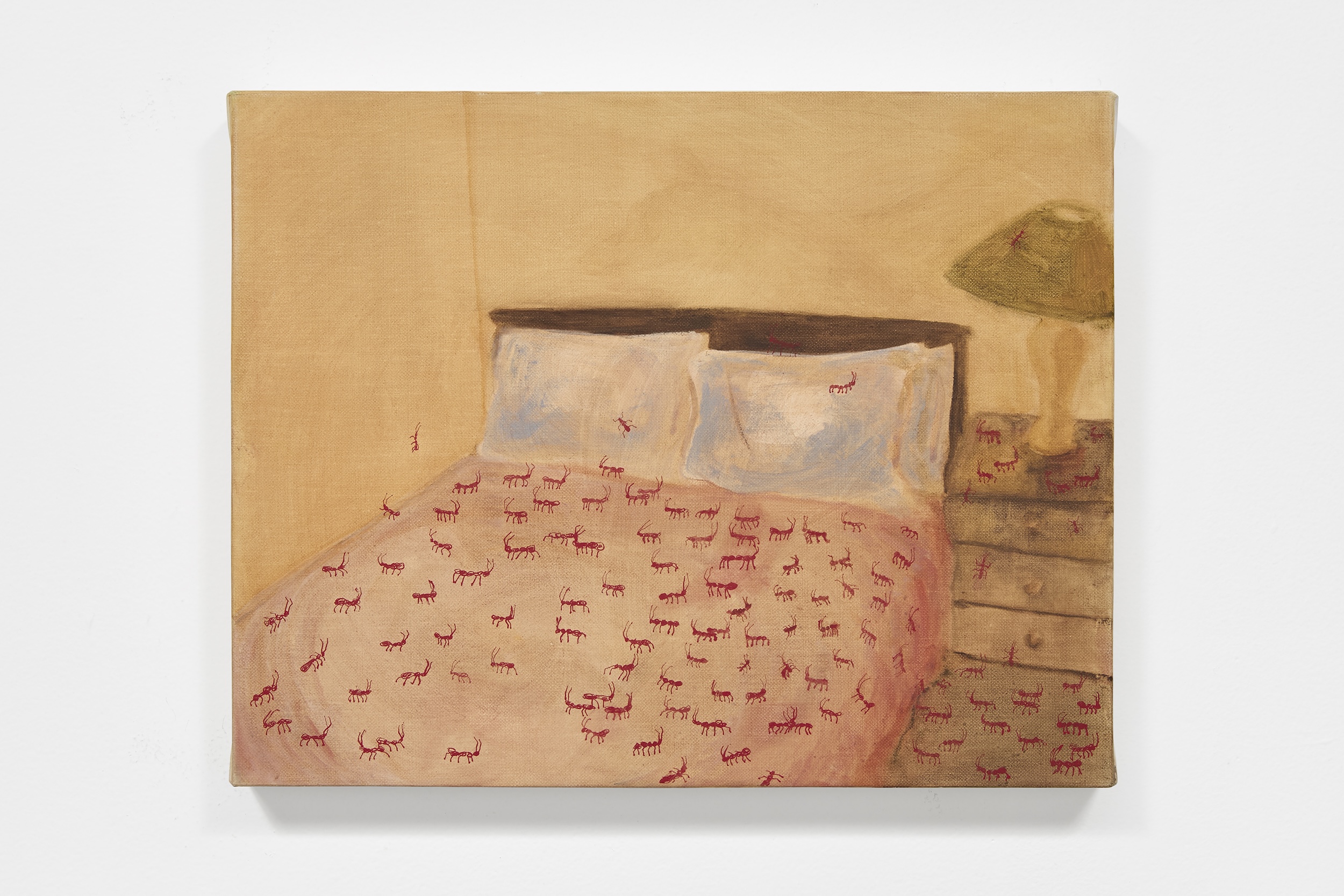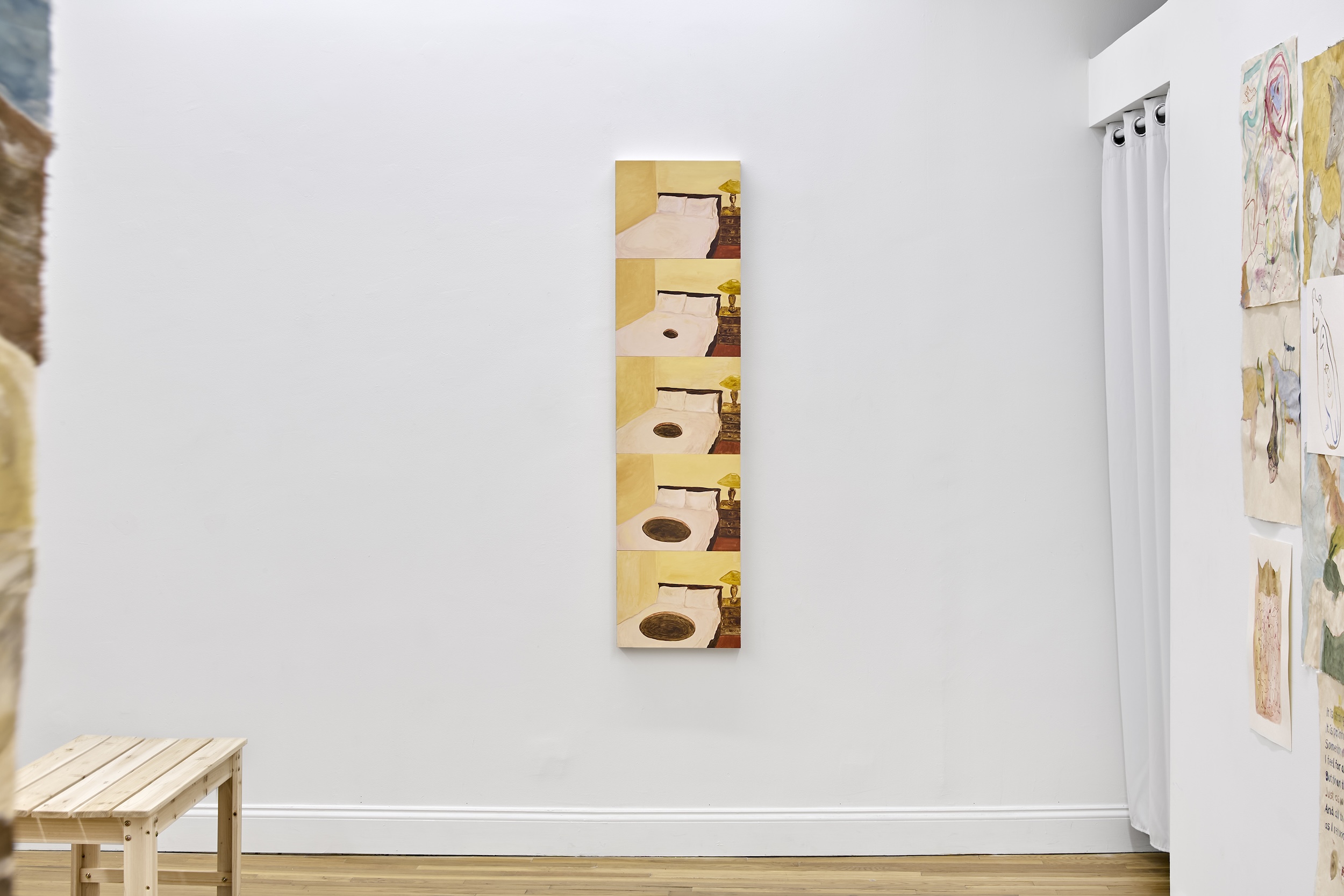 The motif of the bed recurs throughout the exhibition as both sanctuary and stage. The bed becomes a site of metamorphosis, a threshold where mediums and emotional states leak into one another—an entry point into a room that exists within a body rather than a structure.
